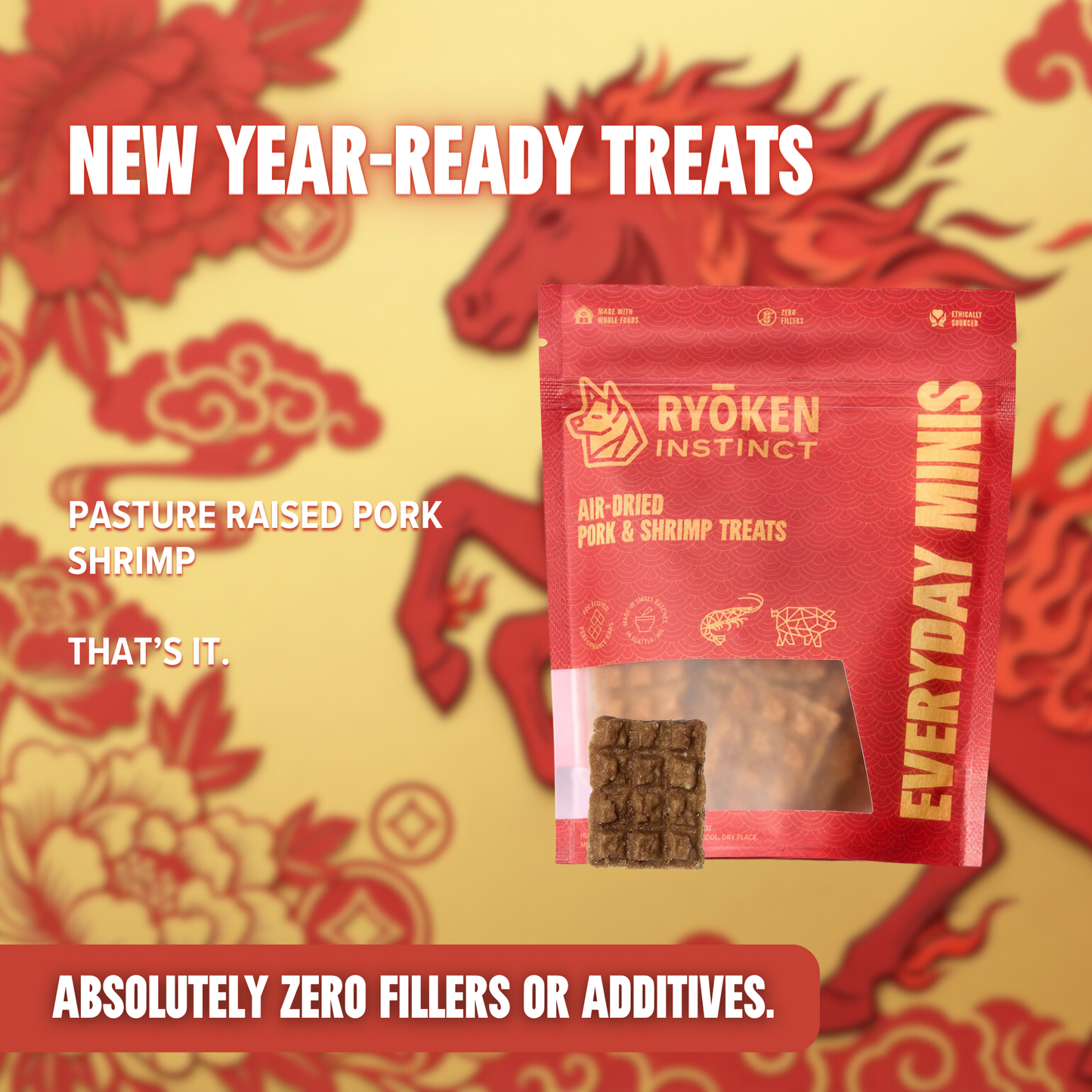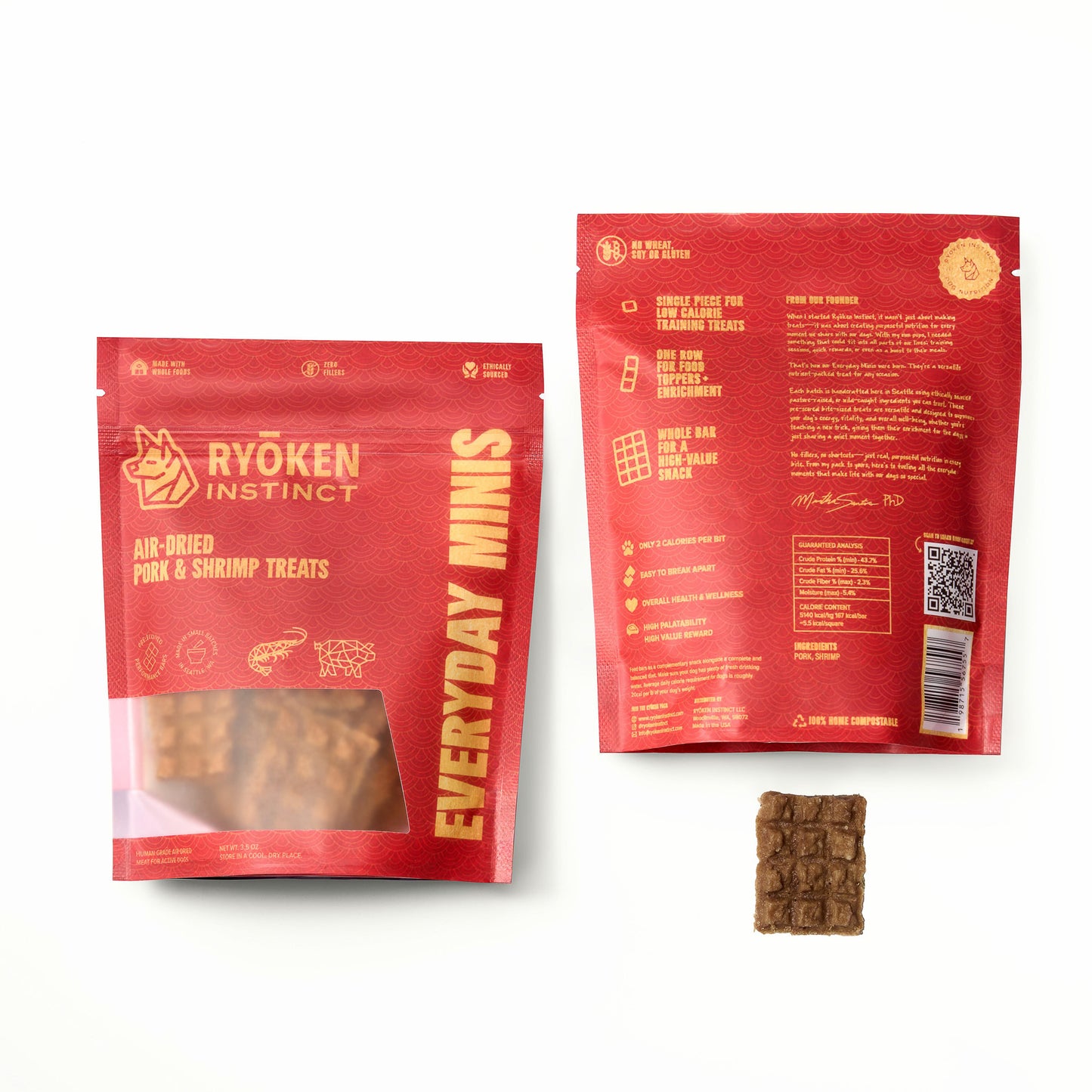 "My dogs Kilo and Hex can’t get enough of Ryōken bars and minis! I’m so happy we were able to find a sustainable, high protein, low ingredient treat for them. They’re the perfect solution to refuel during and after hikes, dog sports, and training!"
